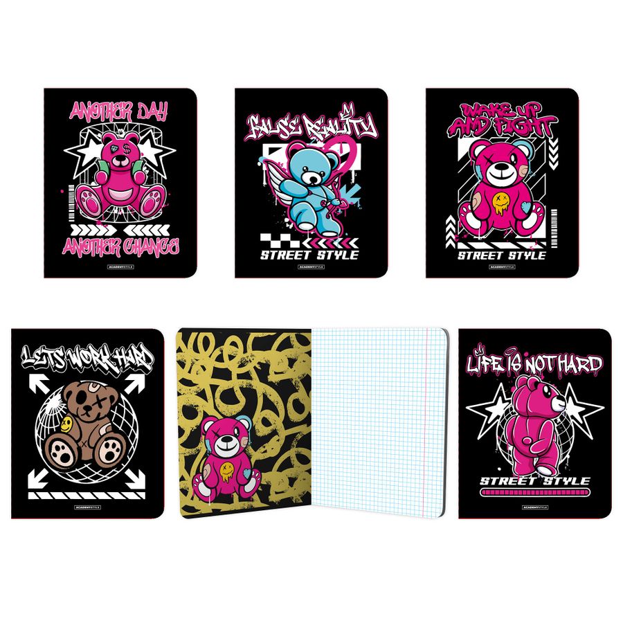 Тетрадь А5 48л клетка скрепка мелов.картон Мишки-мотивашки soft touch ассорти ACADEMY STYLE 15088/5
