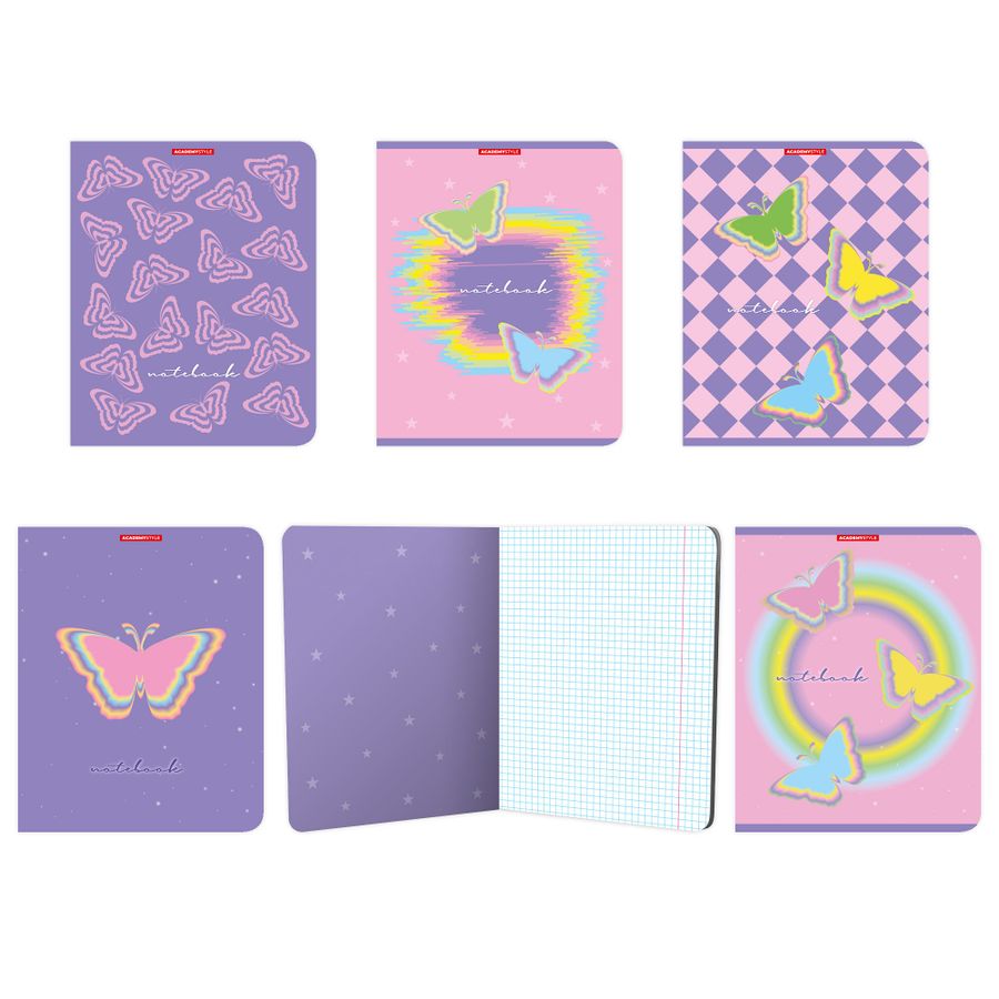 Тетрадь А5 48л клетка скрепка мелов.картон Groovy бабочки soft touch ассорти ACADEMY STYLE 15087/5