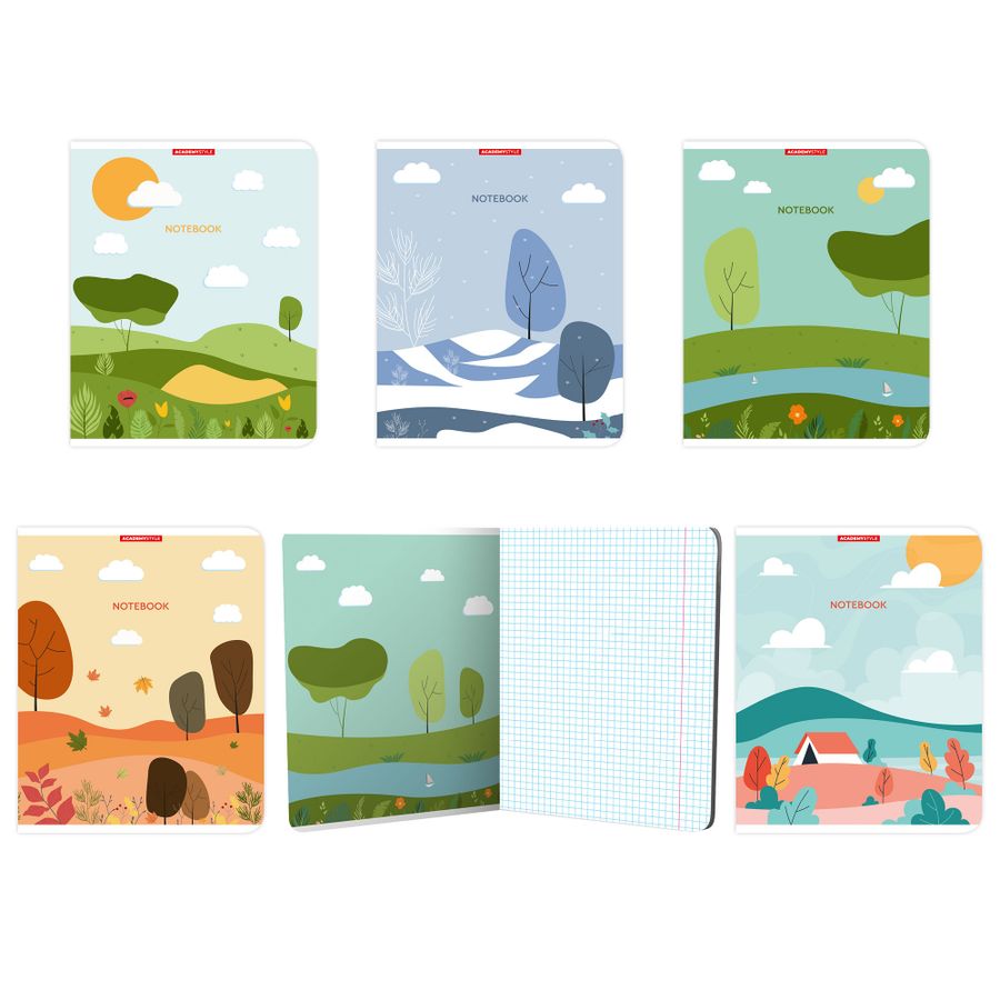 Тетрадь А5 48л клетка скрепка мелов.картон Времена года мат.лам. ассорти ACADEMY STYLE 15037/5