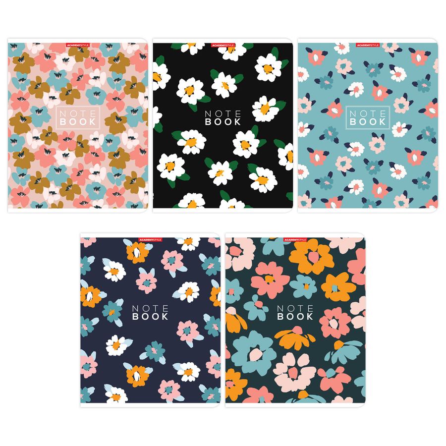 Тетрадь А5 48л клетка скрепка мелов.картон Вальс цветов мат.лам ассорти ACADEMY STYLE 15076/5