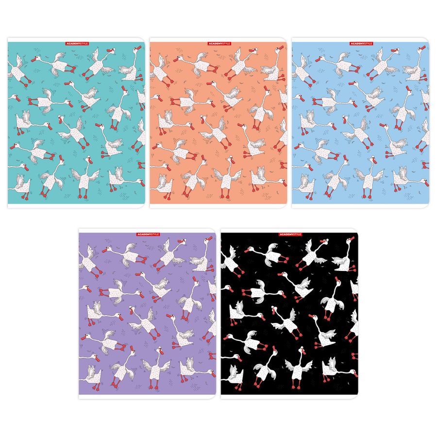 Тетрадь А5 48л клетка скрепка мелов.картон Гусики мат.лам. ассорти ACADEMY STYLE 15075/5