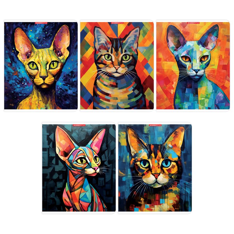 Тетрадь А5 48л клетка скрепка мелов.картон Ушастые УФ-лак ассорти ACADEMY STYLE 15058/5