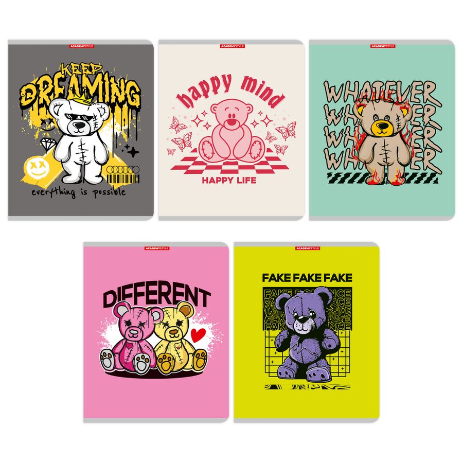 Тетрадь А5 48л клетка скрепка мелов.картон Не плюшевые УФ-лак ассорти ACADEMY STYLE 15057/5