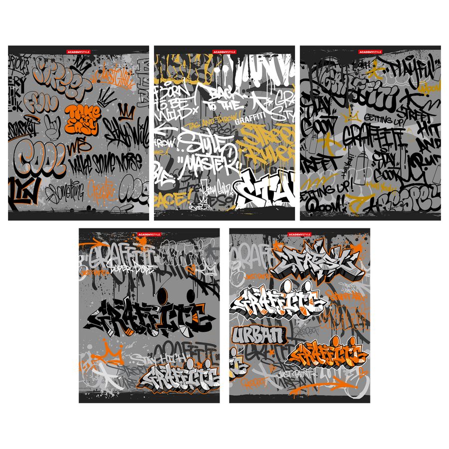 Тетрадь А5 96л клетка скрепка мелов.картон Граффити металлизир. ассорти ACADEMY STYLE 13221/5