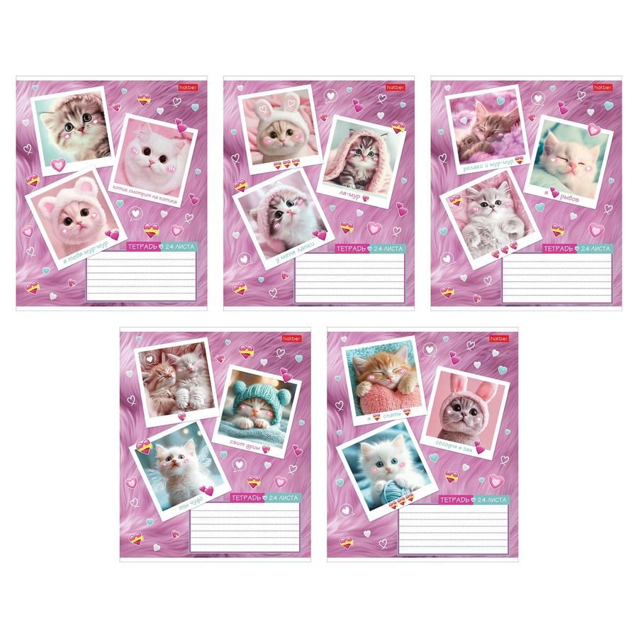 Тетрадь А5 24л клетка скрепка мелов.картон Мяу-статусы ассорти 5 диз. HATBER 24Т5В1