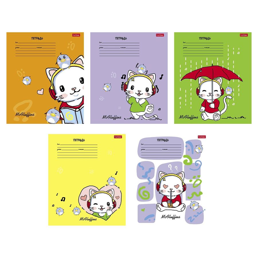 Тетрадь А5 24л клетка скрепка мелов.картон Мак Флаффинс ассорти 5 диз. HATBER 24Т5В1