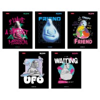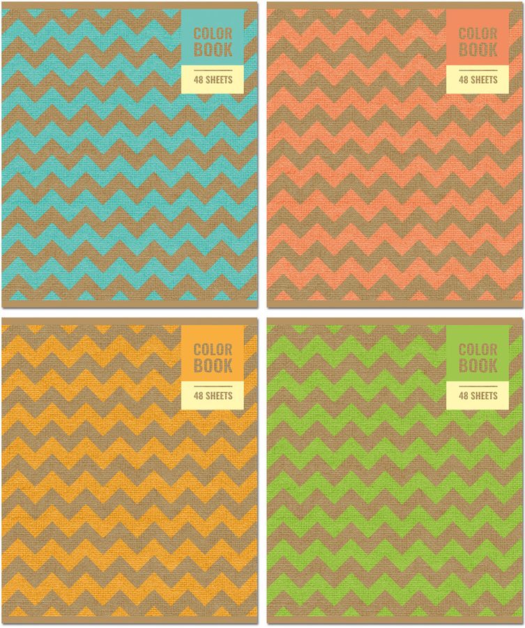 Тетрадь общая 48л, ЗИГЗАГИ, обложка-мелов.картон+софттач-лак, скрепка, клетка