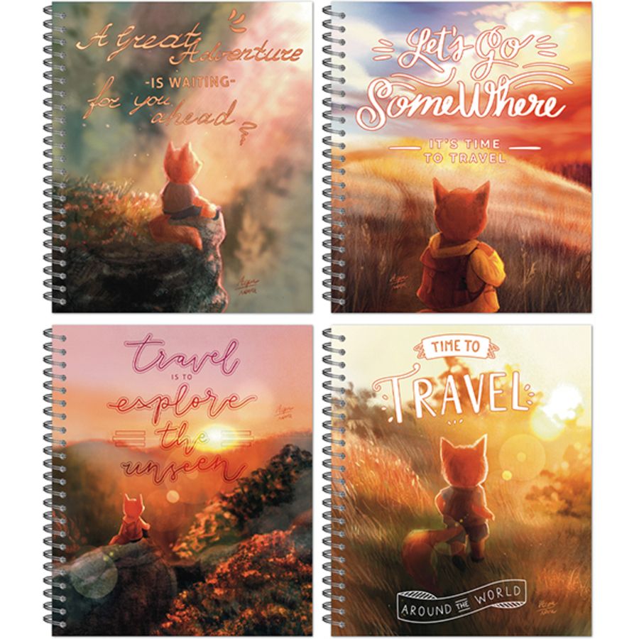 Тетрадь А5 96л клетка гребень мелов.картон Лисенок - путешественник ассорти ПОЛИНОМ 3310-96