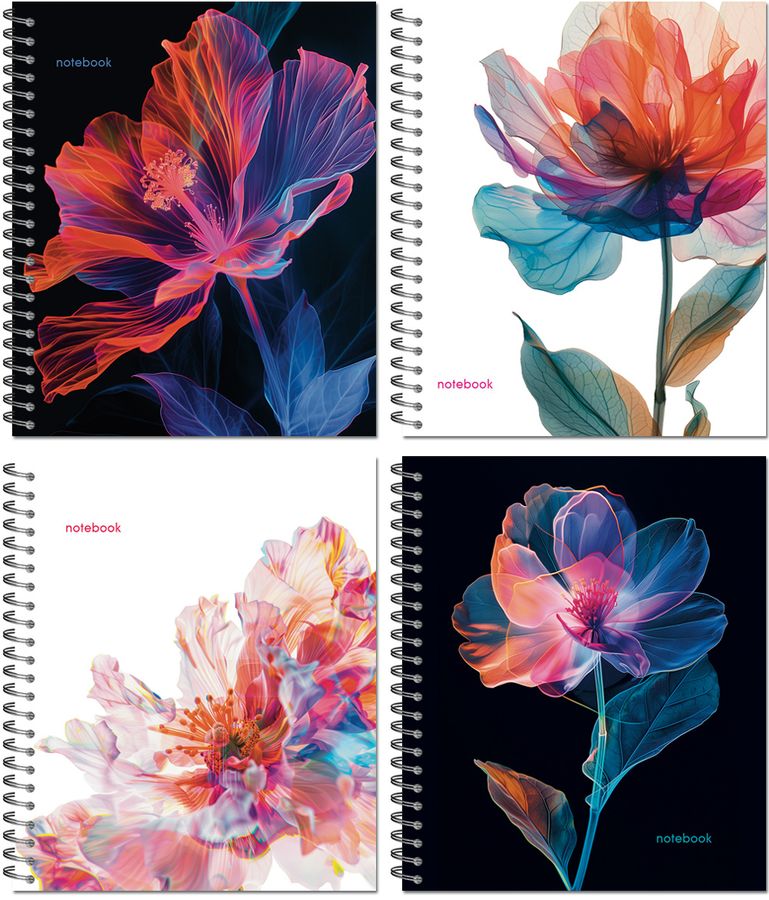 Тетрадь А5 96л клетка гребень мелов.картон Цветы УФ-лак ассорти 4 диз. ПОЛИНОМ 3450-96