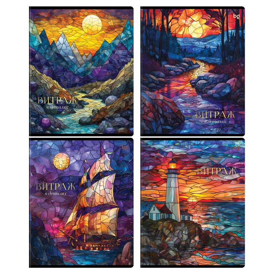 Тетрадь BG серии "Витраж" в клетку. Формат А5. Вид крепления – скрепка. Внутренний блок – это 80 листов, офсетная бумага плотностью 60 г/м². Обложка выполнена из мелованного картона. Тетради со стильным дизайном отлично подходят для выполнения домашних и контрольных работ. Отделка-матовая ламинация, тиснение фольгой• Кол-во листов: 80 л;• Линовка: клетка;• Белизна: 100%;• Плотность блока: 60 г/м²;• Крепление: скрепка• Материал обложки: мелованный картон.