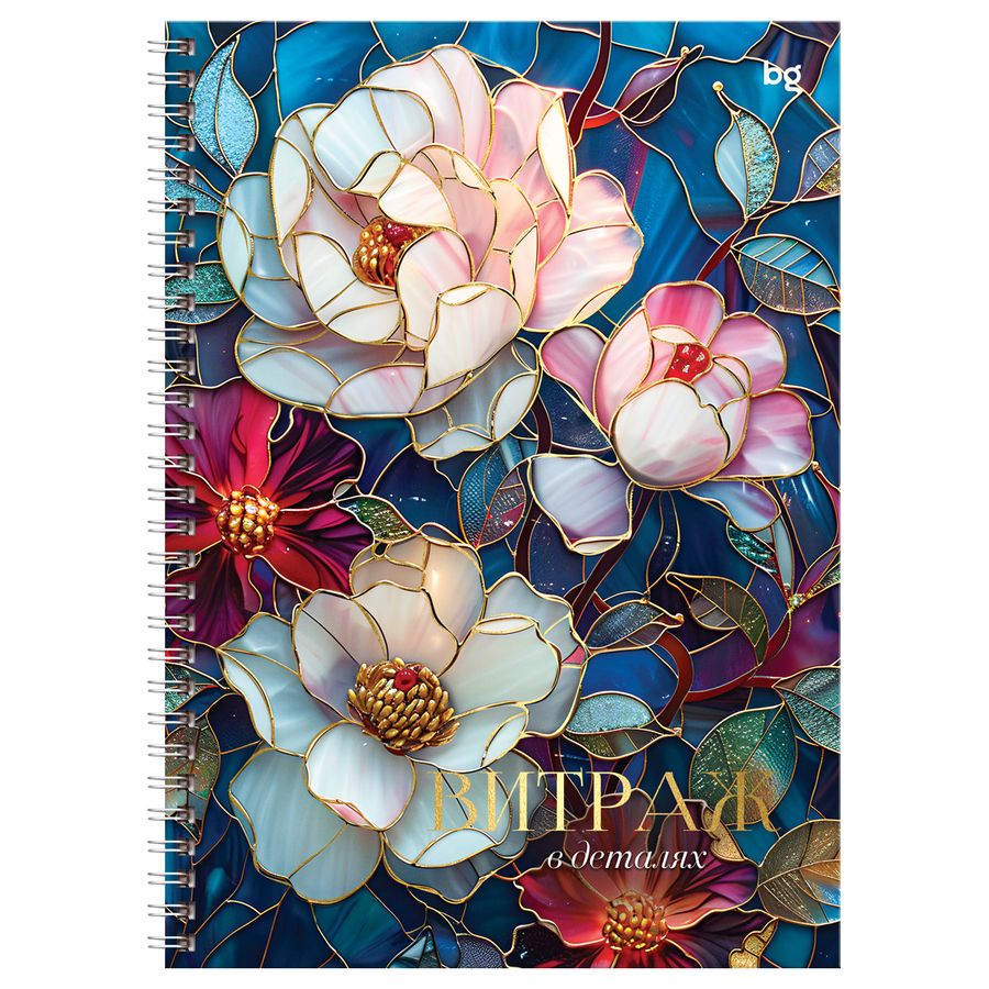Общая тетрадь BG серии "Витраж" в клетку без полей подходит для выполнения домашних работ, конспектирования большого объёма информации. Формат изделия — А5 (165*205 мм). Внутренний блок на гребне состоит из 96 листов офсетной бумаги плотностью 60 г/м2. Белизна — 100 %. Твёрдая обложка тетради изготовлена из мелованного картона с глянцевой ламинацией и тиснением фольгой• Количество листов: 96;• Линовка: клетка без полей;• Формат: А5 (165*205 мм); • Белизна: 100 %; • Крепление: гребень/спираль;• Плотность блока: 60 г/м2;• Материал обложки: ламинированный картон;• Отделка облокжи: глянцевая ламинация + тиснение фольгой.