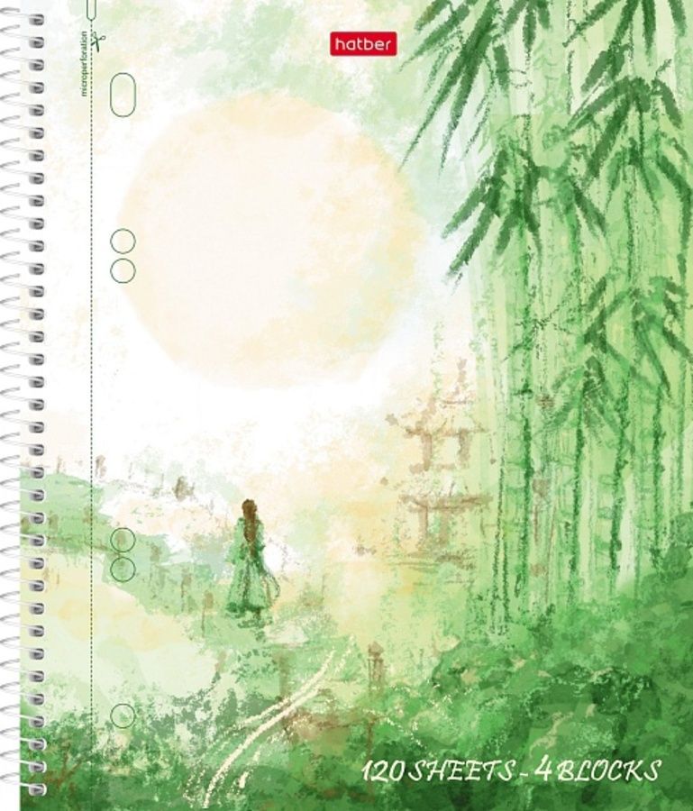 Тетрадь А5 120л клетка спираль мелов.картон Тишина Поднебесной с раздел. HATBER 120Тр5лВ1сп_32338
