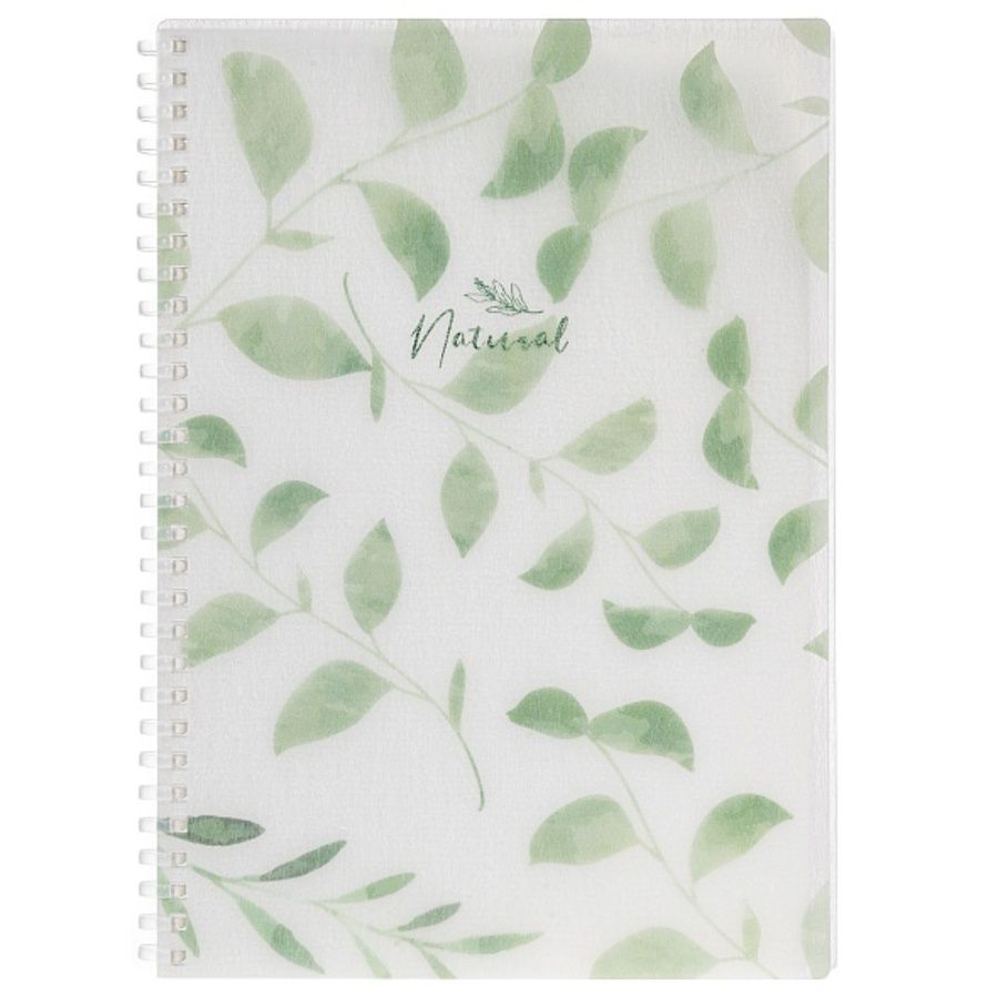 "Premium" Тетрадь 80л B5ф 175x250мм клетка 80гр/кв.м тониров.блок Пластиковая обложка с печатью текстура с тиснением фольгой на мягкой спирали NATURAL LEAVES в индив.упак.