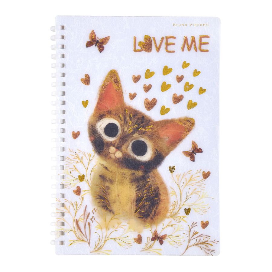 Тетрадь на силиконовом гребне"Котики делают нас счастливыми" от Bruno Visconti в клетку для ведения записей различного характера. Благодаря гребню и плотной обложке страницы тетради можно переворачивать на 360 градусов и делать записи на «весу» во время брифингов, презентаций. А можно раскрывать тетрадь на 180 градусов, держа открытой на столе. Дизайн обложки – авторский. Обложка изготовлена из полипропилена и имеет отделку золотой фольгой. Внутренний блок содержит 60 листов бежевой бумаги плотностью 70 г/кв.м.