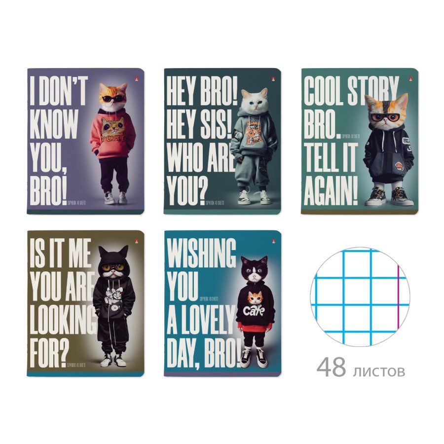 Тетрадь А5 48л клетка скрепка мелов.картон AI Cat УФ-лак ассорти 5 видов АЛЬТ 7-48-1330