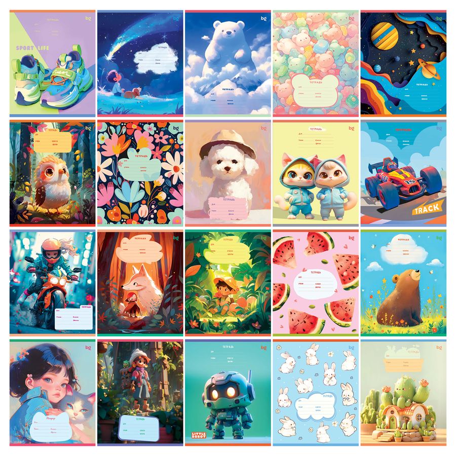 Тетрадь bg серии Super Mix-20 — отличный помощник в учёбе. Внутренний блок состоит из 18 листов в клетку. Тип крепления — скрепка. Благодаря формату А5 тетрадь легко поместится в папку или рюкзак. Для письма на офсетной бумаге плотностью 60 г/м² подходят любые ручки и карандаши. Обложка из мелованного картона защищает листы от замятий и повреждений. Поле для подписи поможет ребёнку найти свою тетрадь среди других. В комплект входит 20 изделий с разнообразными обложками, которые оценят школьницы.• Формат: А5;• Количество листов: 18;• Плотность: 60 г/м²;• Материал обложки: мелованный картон;• Дополнительные элементы: поле для подписи.