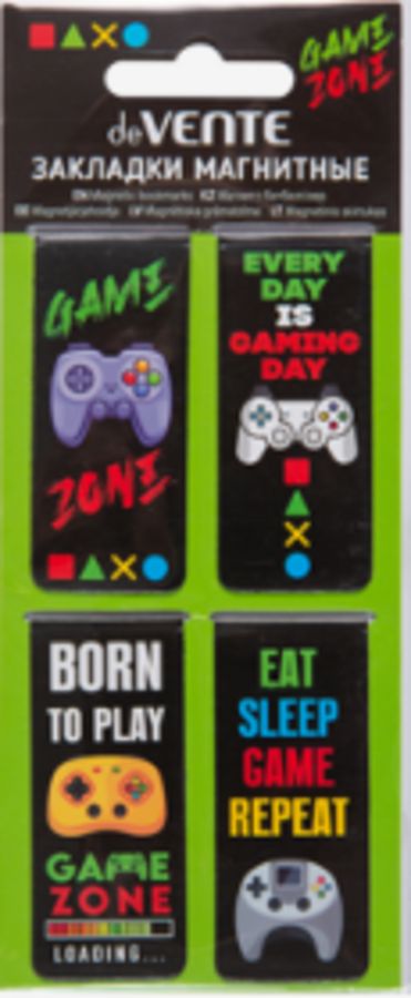 Набор закладок для книг "deVENTE. Gamer" магнитных бумажных, 4 шт в блистерной упаковке, размеры закладок в сложенном виде 25x56,6 мм