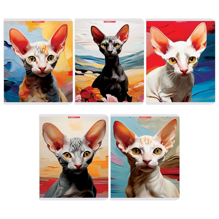 Коллекция: Коты Бренд: Academy Style Эффекты: софт-тач ламинация Формат: А5 Листность: 96 Вид крепления: скрепка Линовка: клетка Материал товара: обложка - картон мелованный, блок 60-65 г