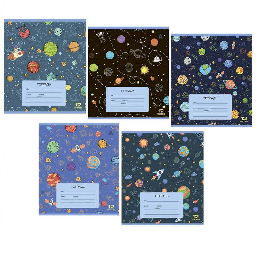 Тетрадь А5 12л клетка мелов.картон Космос бел 100% ассорти ALINGAR AL10029