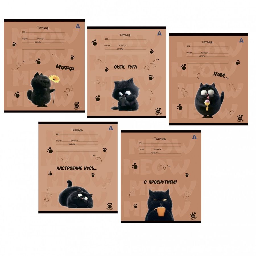 Тетрадь А5 12л клетка мелов.картон Мур-мяфф бел 100% ассорти ALINGAR AL10030