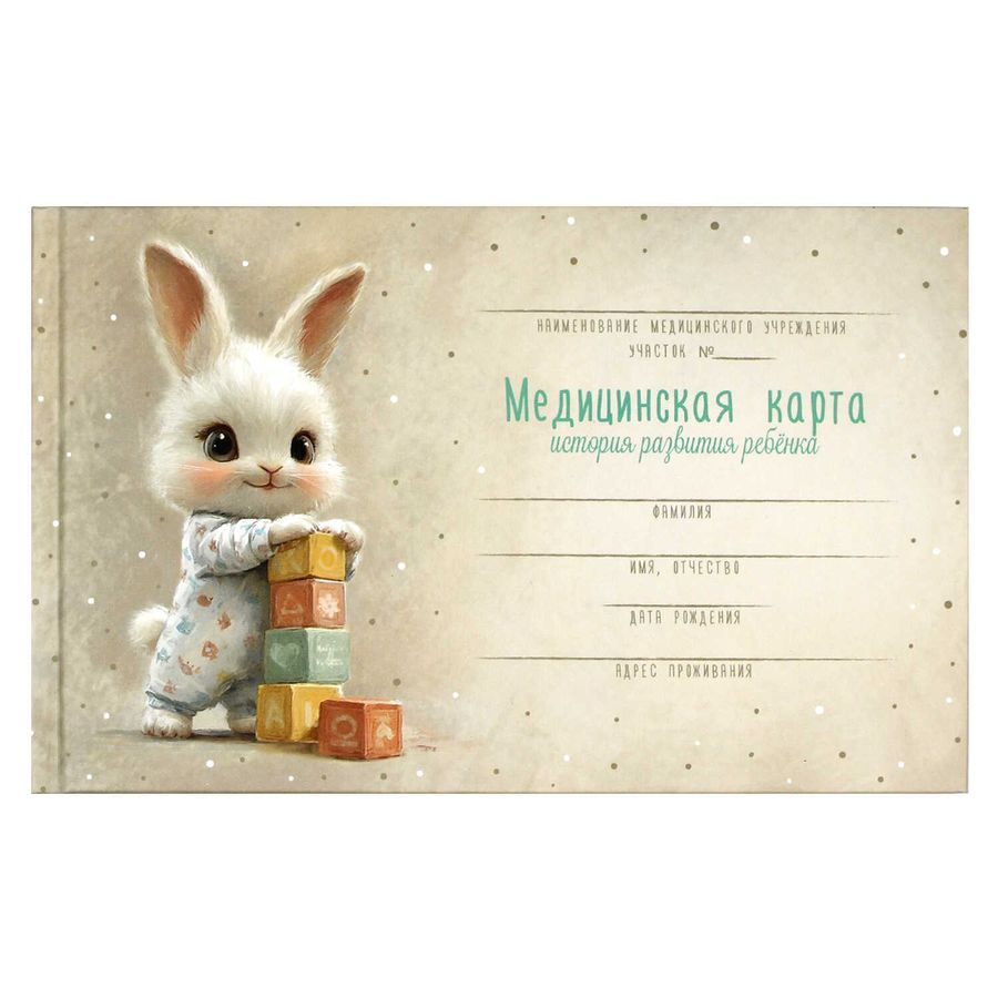 Медицинская карта. История развития ребенка. Форма 112/у. арт. 71211 ЗАЙКА С КУБИКАМИ / А5, 96 л., твёрдый переплёт, полноцветная печать, матовая ламинация. Блок - белый офсет, 65 г/м², печать в одну.