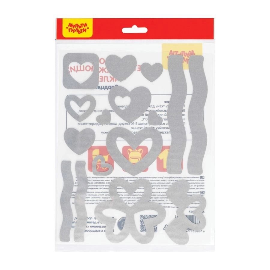 Наклейки светоотражающие на одежду 16шт серебряный Сердца МУЛЬТИ-ПУЛЬТИ MS_47797