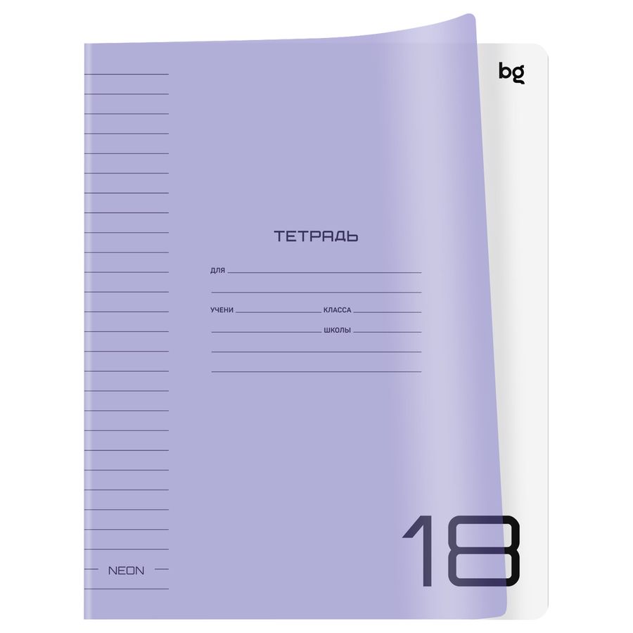 Тетрадь BG серии UniTone. формата А5 (165*205 мм) на скрепке станет отличным помощником в учёбе. Внутренний блок состоит из 18 листов офсетной бумаги плотностью 60 г/м² в линию с полями. Обложка выполнена из мягкого полупрозрачного пластика , также есть дополнительный лист из качественной офсетной бумаги 110 г/м2 для подписи тетрадей. Преимущество таких тетрадей заключается в том, что для сохранения внешнего вида не нужно покупать доп. обложку, так как сама обложка тетради выполнена из прочного износостойкого пластика. Тетради с лаконичным дизайном идеально подойдут для школьников любого года обучения. • Кол-во листов: 18 л; • Линовка: линия; • Белизна: 100%; • Плотность блока: 60 г/м²; • Материал обложки: мягкий прозрачный пластик.