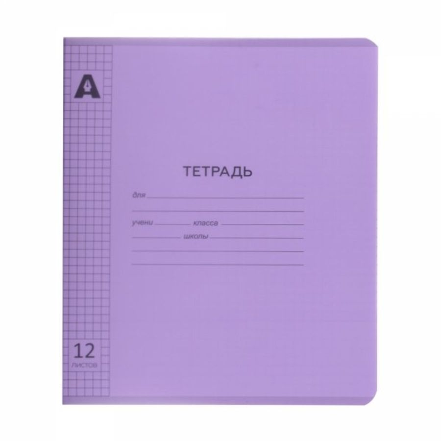 Тетрадь А5 12л клетка пласт.обл. Однотон Фиолетовый пастель ALINGAR AL12424