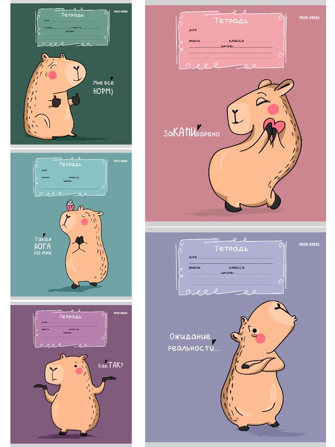 Тетрадь А5 12л клетка обл.мелов.бум. Милая капибара ассорти 5 диз. PROF-PRESS Т12-5954