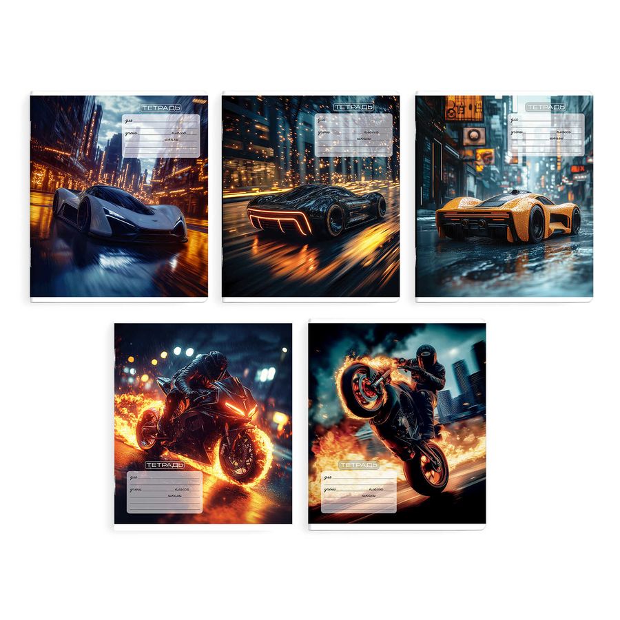 Тетрадь школьная ученическая, 12 л, косая линия, арт. 70203/ 10 ОГНЕННЫЙ ДРАЙВ /А5+, мягкий переплёт (2 скобы), обложка - выборочный УФ-лак, мелованный картон 190 г/м², упаковка ассорти.
