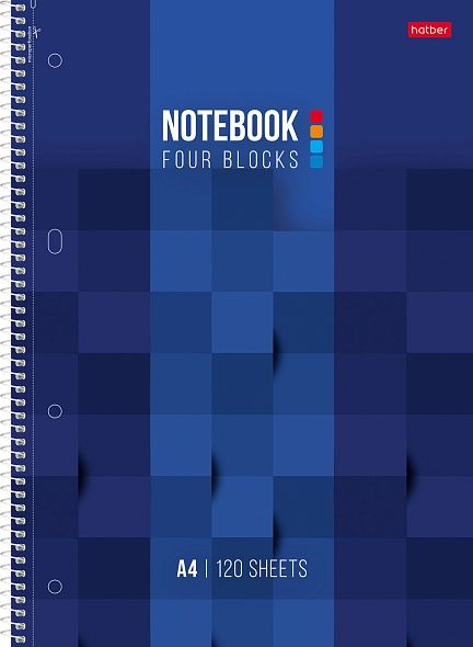 Тетрадь А4 120л клетка спираль мелов.картон Blue pixel с разделителями HATBER 120Тр4лВ1сп_32196
