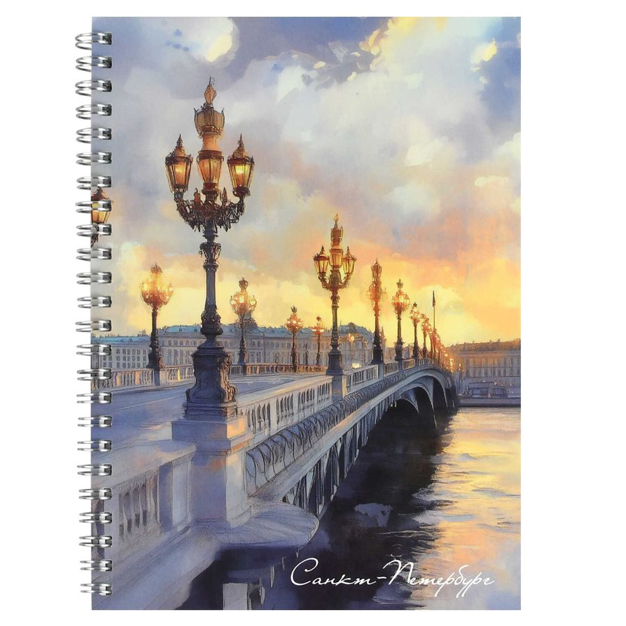 Блокнот, А5, 48 л, арт. 71526 НАБЕРЕЖНАЯ / Блок - белый офсет 80 г/м², клетка, гребень по длинной стороне, матовая ламинация