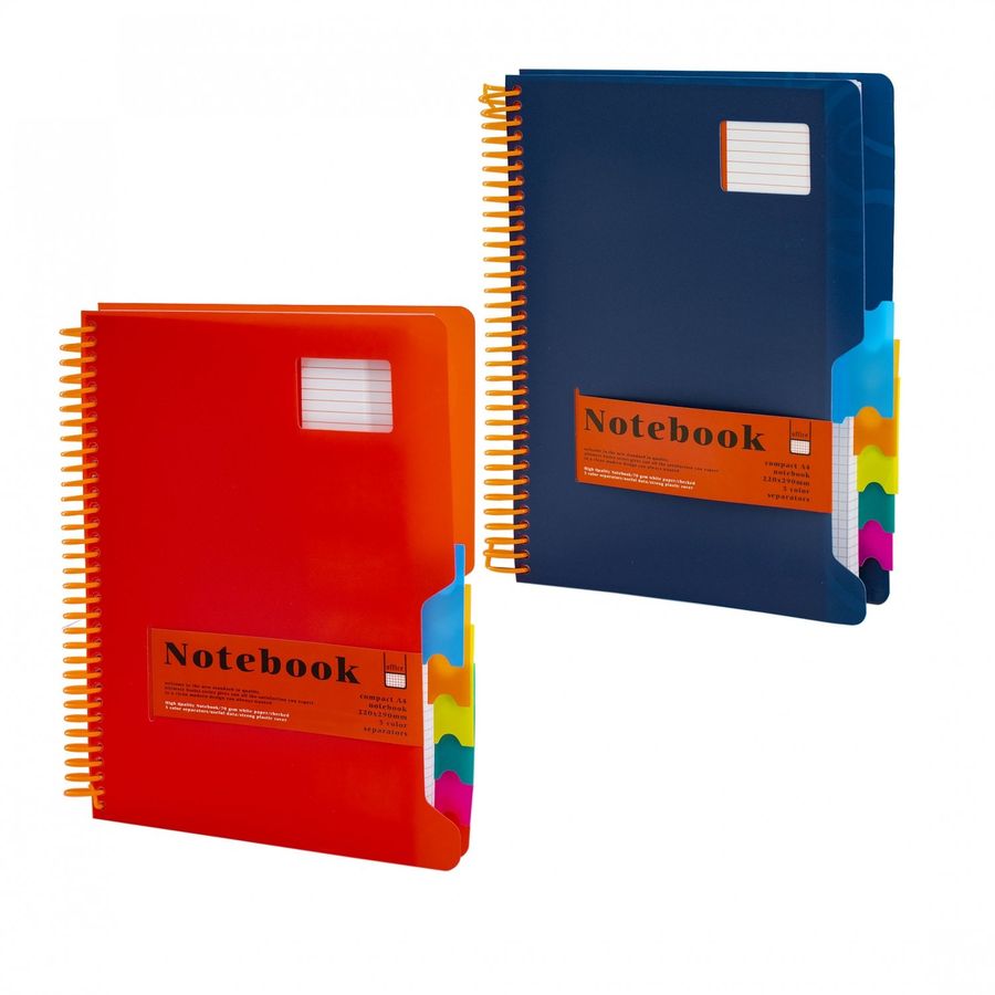 Тетрадь А4 200л клетка спираль пласт.обл. Однотон Завитки с разделителями ассорти ALINGAR AL12022