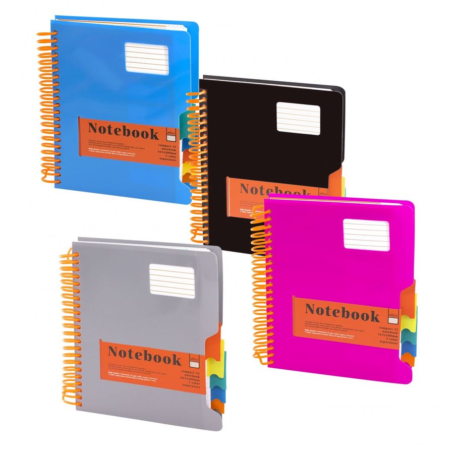 Тетрадь 200л., А5, клетка, Alingar, цветная спираль, пластиковая обложка с информ. окном, цветные пластиковые разделители, ассорти 4 цвета