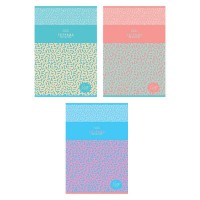 Серия тетрадей А5 формата (167х202мм), 48 листов. Обложка - мелованный картон. 5 дизайнов в блоке. Вид отделки: Soft-touch. Внутренний блок офсетная бумага, плотность 60-65 гр.м, клетка, красные поля. Белизна 100% Вид крепления скоба. Скругленные уголки обложки и блока.Тетради подойдут для записей в старшей школе, вузе, дома и в офисе.