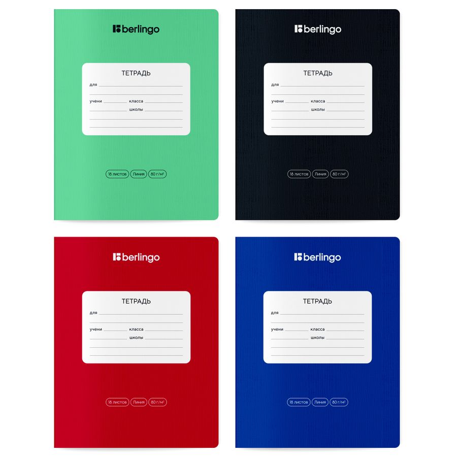 Школьная тетрадь Berlingo серии Classic Pro формата А5 (165*205 мм) на скобе состоит из 18 листов и идеально подходит для письма шариковой, гелевой или капиллярной ручкой.Внутренний блок – офсетная бумага повышенной плотности 80 г/м², белизна – 100%, линовка – линия с полями.Однотонная обложка тетради изготовлена из плотного мелованного картона, имеет стильную рельефную текстуру, с матовым покрытием.Обложка и внутренний блок имеют скругленные уголки.Тетради упакованы в термоусадочную пленку по 10шт.В упаковке представлен микс из 4 цветов: зеленый (3шт), черный (3шт), красный (2шт), синий (2шт). • Количество листов: 18; • Линовка: линия с полями; • Формат тетради: А5 (165*205 мм);• Крепление: скрепка; • Материал обложки: мелованный картон 190 г/м²