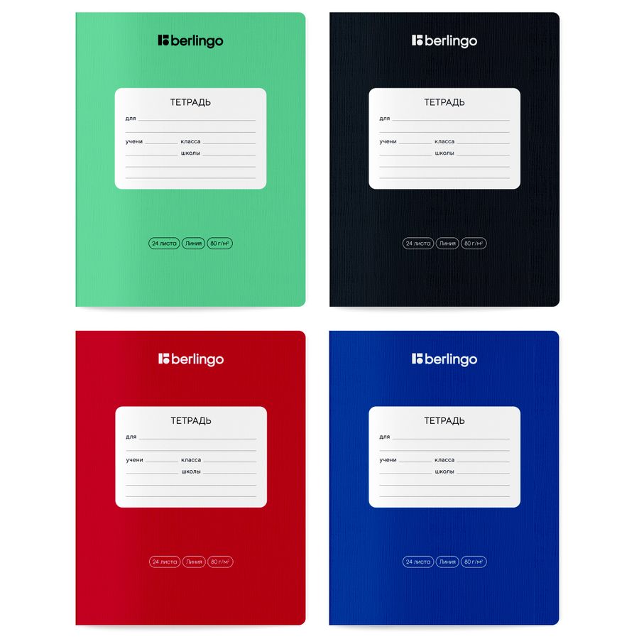 Школьная тетрадь Berlingo серии Classic Pro идеально подходит для выполнения классных и домашних работ. Формат — А5 (165*205 мм). Внутренний блок состоит из 24 листов. Тип крепления — скрепка.Листы сделаны из офсетной бумаги повышенной плотности 80 г/ м². Тетрадь подходит для письма шариковыми, гелевыми и капиллярными ручками. Чернила не просвечивают с обратной стороны листа. Чёткая линовка в линию и поля помогают аккуратно вести записи, что особенно важно для детей, у которых только формируется почерк. Белизна бумаги — 100 %.Однотонная обложка изготовлена из плотного мелованного картона толщиной 190 г/м². Она отличается рельефной текстурой и матовым покрытием, которое приятно на ощупь. Обложка и внутренний блок имеют скругленные уголки. Тетради упакованы в термоусадочную плёнку по 10 штук. В упаковке представлен микс из четырёх ярких цветов: зелёный (3 шт), чёрный (3 шт), красный (2 шт), синий (2 шт).