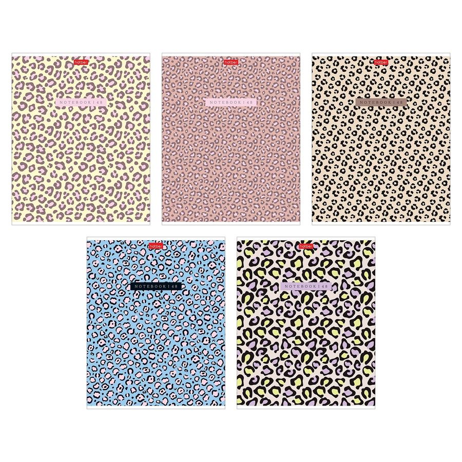 Тетрадь А5 48л клетка скрепка пласт.обл. LEO-принт ассорти 5 дизайнов HATBER 48Т5В1пл