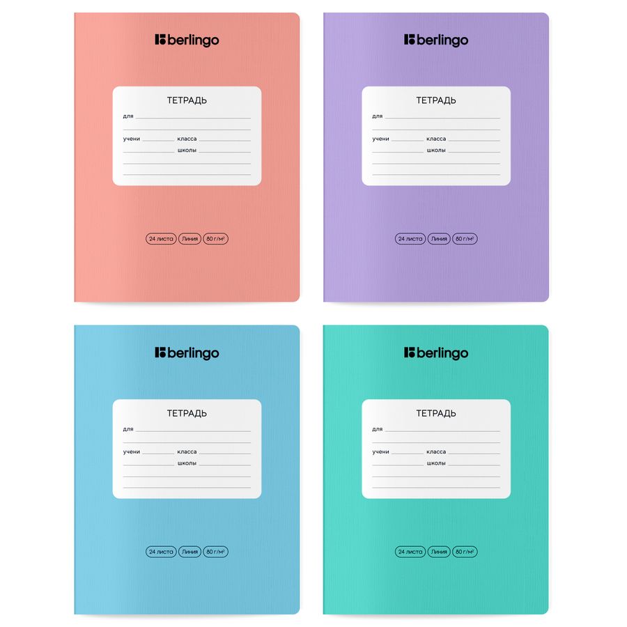 Школьная тетрадь Berlingo серии Instinct идеально подходит для выполнения классных и домашних работ. Формат — А5 (165*205 мм). Внутренний блок состоит из 24 листов. Тип крепления — скрепка. Листы сделаны из офсетной бумаги повышенной плотности 80 г/ м². Тетрадь подходит для письма шариковыми, гелевыми и капиллярными ручками. Чернила не просвечивают с обратной стороны листа. Чёткая линовка в линию и поля помогают аккуратно вести записи, что особенно важно для детей, у которых только формируется почерк. Белизна бумаги — 100 %. Однотонная обложка изготовлена из плотного мелованного картона толщиной 190 г/м². Она отличается рельефной текстурой и матовым покрытием, которое приятно на ощупь. Обложка и внутренний блок имеют скругленные уголки. Тетради упакованы в термоусадочную плёнку по 10 штук. В упаковке представлен микс из четырёх пастельных цветов: аквамарин (3 шт), мятный (3 шт), фламинго (2 шт), лаванда (2 шт).