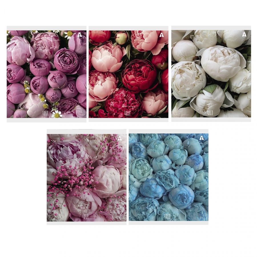 Тетрадь А5 48л клетка скрепка мелов.картон Нежные цветы ассорти 5 дизайнов ALINGAR AL9924