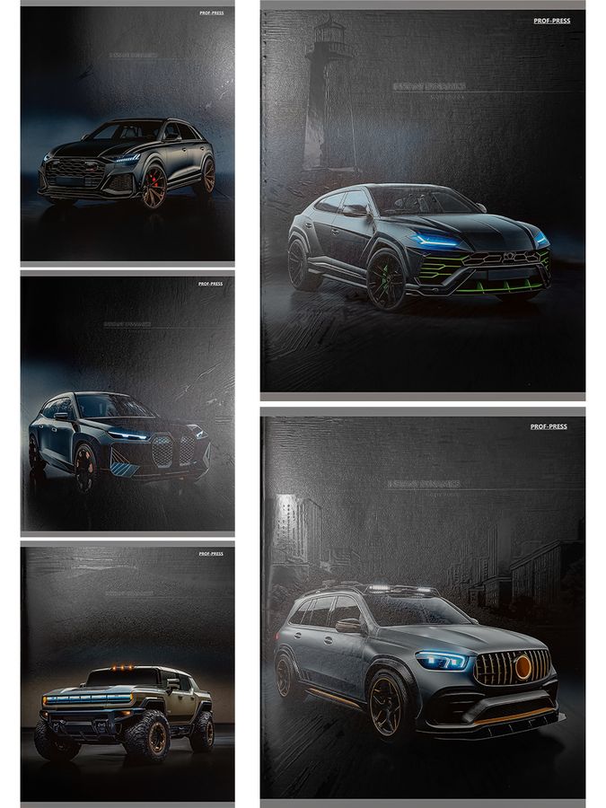 Тетрадь А5 48л клетка скрепка мелов.картон Красивые автомобили-11 ассорти PROF-PRESS 48-9885