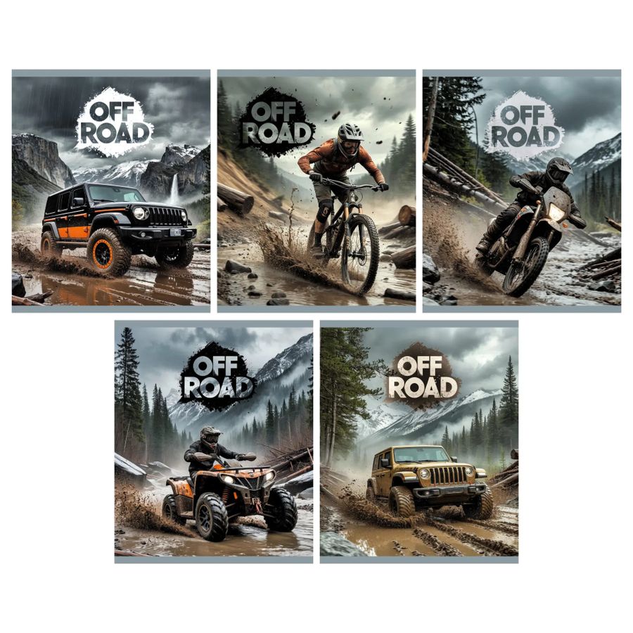 Тетрадь А5 48л клетка скрепка мелов.картон Off Road твин-лак ассорти 5 диз. Listoff ТК2Л489670