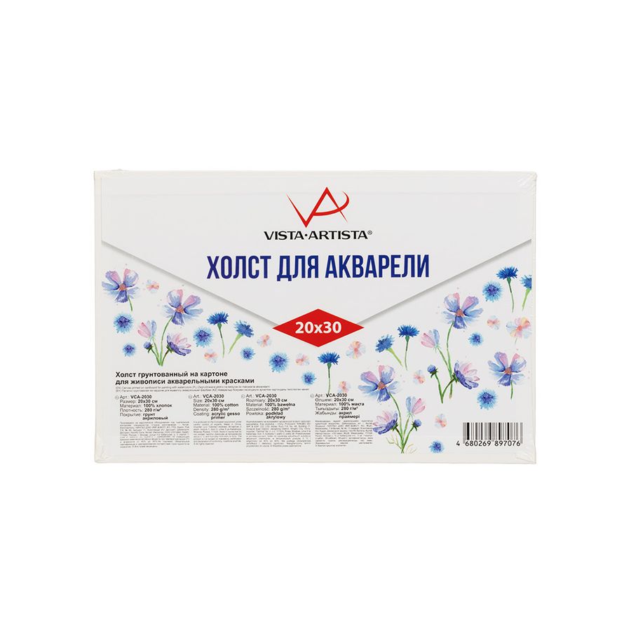 Холст грунтованный на картоне для акварельной живописи "VISTA-ARTISTA" – это идеальная основа для художественного творчества. Хлопковое полотно качественно покрыто специальным грунтом, благодаря которому на холсте можно писать акварельными красками. В отличии от бумаги, холст выдерживает большое количество воды и не топорщится от влаги. Так же используется для живописи гуашью и акрилом. Состав холста - 100% хлопок, экстра-мелкое зерно. Плотность - 280 г/м2. Покрытие - акриловый грунт. Небольшой вес, удобно хранить и использовать [в т.ч. брать на пленэр]. Срок годности не ограничен. Размер холста грунтованного на картоне может отличаться на ±10 мм.