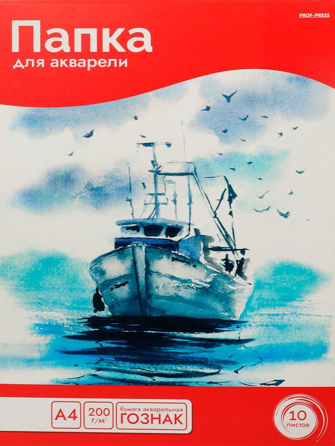 Папка для рисования акварелью А4 10л Одинокий корабль 200г/м2 PROF-PRESS 10-5810