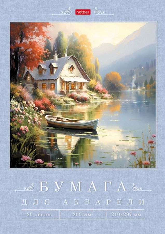 Папка для рисования акварелью А4 20л Дом у озера 200г/м2 HATBER 20Ба4тВ_31344