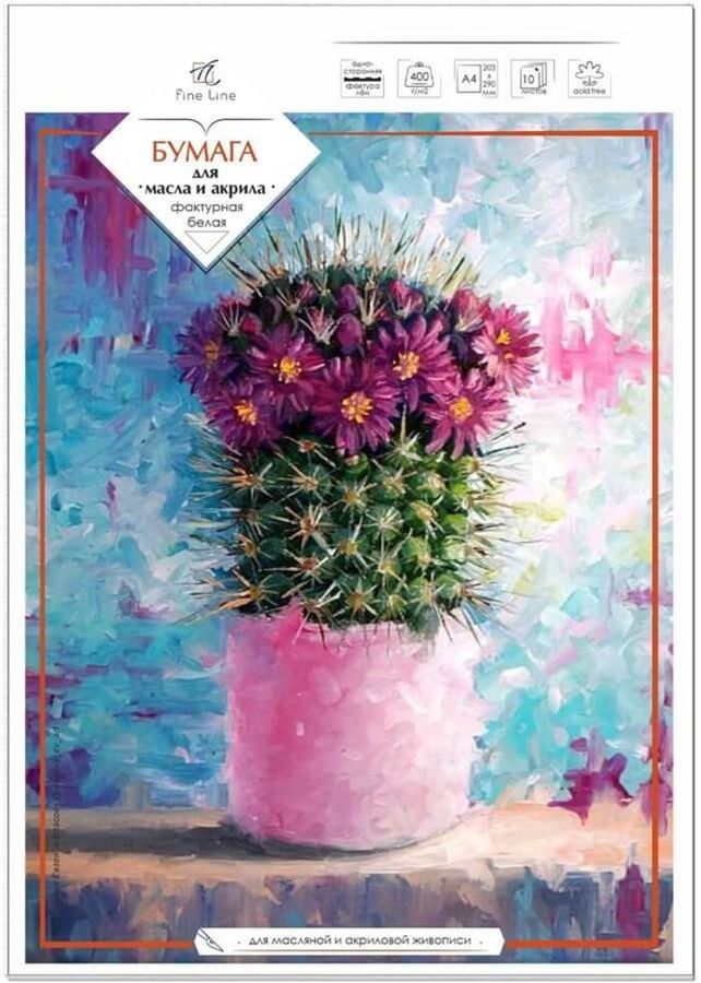 Бумага для масла и акрила А3, 10 листов плотность 400 г/квм, тисненая "холст"; индивидуальная упаковка (прозрачный пакет) со вложенным вкладышем из офсетной бумаги (цветная печать), прозрачный пакет с липким слоем+ цветной вкладыш