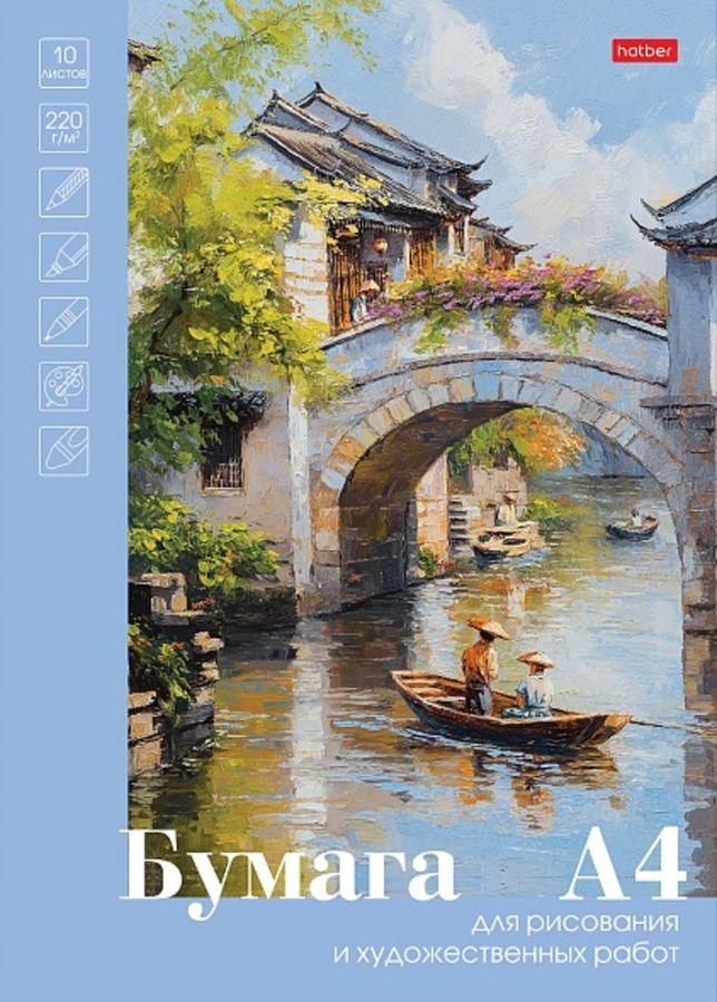 Набор бумаги для рисования и художественных работ А4 формата 10 листов. Для тех, кто любит рисовать. Листы плотностью 220 гр. сохранят ваши рисунки на долгие времена и помогут воплотить все ваши задумки в реальность. Отлично подойдут для разных техник: карандашами, артмаркерами, пастелью, тушью, углём и красками. Папка изготовлена из высококачественного мелованного картона и дополнена спецэффектом в виде тиснения.