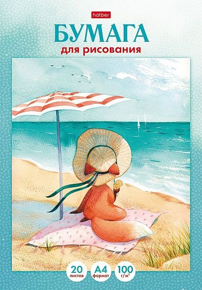Папка для рисования А4 20л Лисичка и море 100г/м2 HATBER 20Бр4тВ_30203