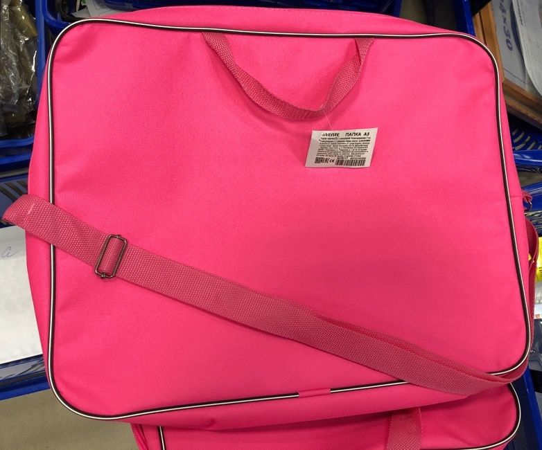 Папка для чертежей и рисунков широкая "deVENTE" A3 (45x35x7 см) текстильная, с текстильным расширением 7 см, на молнии сверху, с внутренним карманом, с регулируемым ремнем через плечо, с текстильными ручками увеличенной длины 24 см, розовая