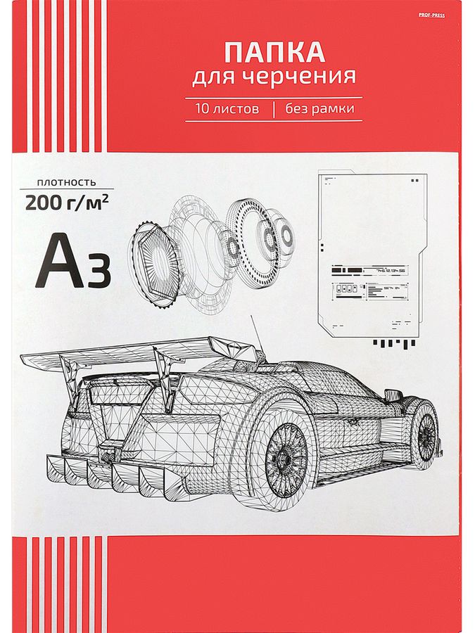 Папка для черчения от компании "Проф-Пресс" содержит 10 отдельных листов бумаги для выполнения чертежно-графических работ карандашами, тушью и чернилами. Внутренний блок без рамки, плотность: 200г/м2, формат А3.